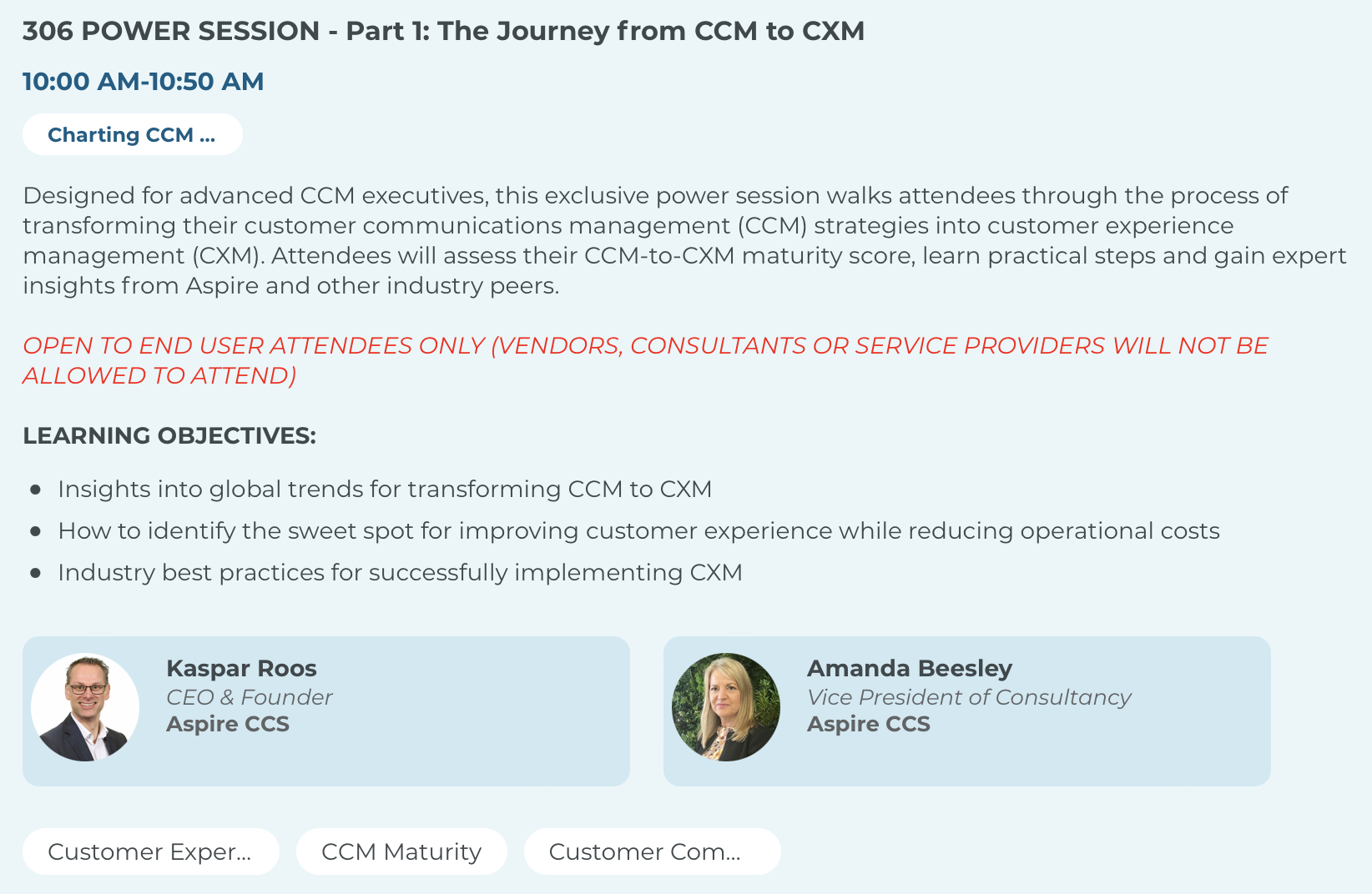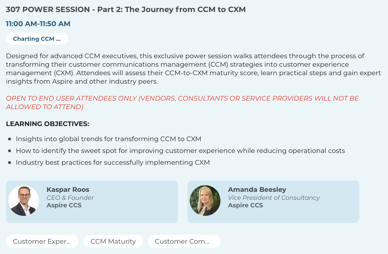 The team at Aspire will be attending and speaking at this year's event. Here's where you can find them...